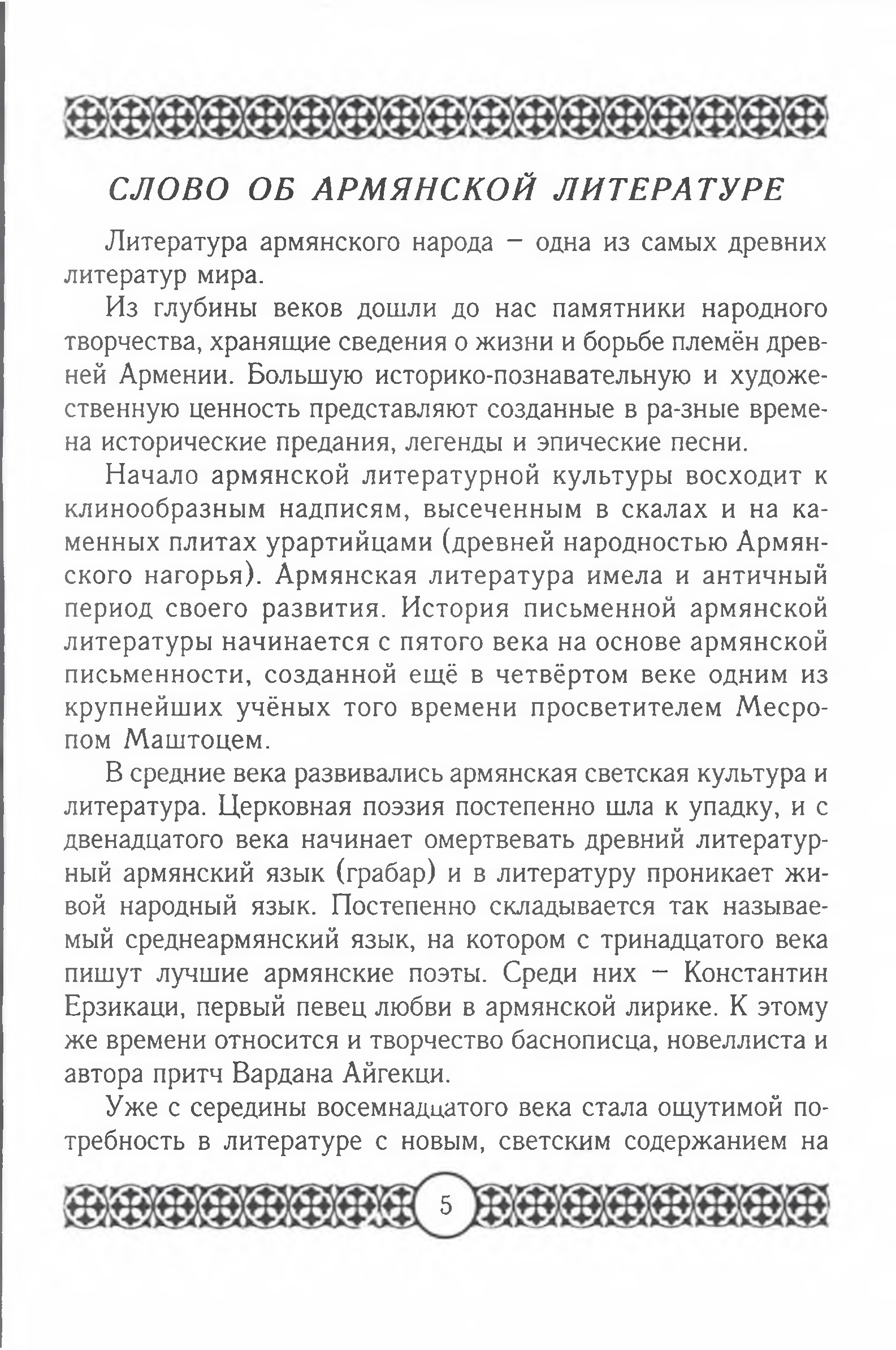 Альманах Союза крымских армянских писателей «Родина в сердце» Հայրենիքը սրտում : Ежегодный альманах Союза крымских армянских писателей Հայրենիքը սրտումВид заведения: Печатное СМИ альманах Дата основания: 2003 Основатель: Союз Крымских армянских писателей Руководитель при регистрации: Пилосян Рушан Койрунович Периодичность: 1 раз в год Язык: русский, армянский Ссылки: Альманах "Родина в сердце" Содержание 1 История 2 Архив номеров Альманаха в формате PDF 3 Союз Крымских армянских писателей 4 Видео 5 Изображения 6 Библиография История В 2002 году была создана Ассоциация крымских армянских литераторов. Первым председателем стал её инициатор и организатор, поэт и переводчик Владимир Эммануилович Вартанян. После ухода из жизни В. Вартаняна в 2007 году ассоциация была переименована в Союз крымских армянских писателей. Возглавил её Сасун Этибарян. В 2010 году председателем Союза крымских армянских писателей был избран заслуженный журналист АРК Рушан Пилосян. Союз крымских армянских писателей имеет свой печатный орган – альманах «Родина в сердце», в котором публикуются их новые произведения: стихи, поэмы, рассказы, новеллы, отрывки из романов, басни, афоризмы. Первый номер Альманаха Союза крымских армянских писателей "Родина в сердце" вышел в 2003 году. Издается ежегодный альманах Союза крымских армянских писателей «Родина в сердце» на двух языках — русском и армянском. В альманахе собраны лучшие произведения современных крымских армянских литераторов поэтов, прозаиков, публицистов. Печатаются на армянском языке и отдельные авторы по заявкам в Медиацентр им. Исмаила Гаспринского. Архив номеров Альманаха в формате PDF Альманах Родина в сердце 01 (2003) Альманах Родина в сердце 02 (2006) Альманах Родина в сердце 03 (2006) Альманах Родина в сердце 04 (2008) Альманах Родина в сердце 05 (2011) Альманах Родина в сердце 06 (2016) Альманах Родина в сердце 07 (2017) Альманах Родина в сердце 08 (2018) Альманах Родина в сердце 09 (2019) Альманах Родина в сердце 10 (2020) Альманах Родина в сердце 11 (2021) Альманах Родина в сердце 12 (2022) Альманах Родина в сердце 13 (2023) Союз Крымских армянских писателей Видео Презентация двух выпусков (6-7) альманаха "Родина в сердце" — издание Союза крымских армянских писателей. Видеоролик Валерия Басырова Изображения № 01 2003 № 01 2003 № 01 2003 № 02 2006 № 06 2016 № 06 2016 № 10 2020 № 11 2021 № 12 2022 № 12 2022 № 12 2022 Библиография Георгий Акопян: «Сегодня в Крыму царит атмосфера мира, понимания и дружбы между всеми народами, проживающими в республике» Архив РГБ. Родина в сердце = Հայրենիքը սրտում : Հայրենիքը սրտում : альманах Союза крымских армянских писателей 9 сентября состоялась презентация книг крымских армянских писателей Родина в сердце. Альманах № 10 Презентация 13 альманаха Союза крымских армянских писателей «Родина в сердце». Архив НЭБ. Родина в сердце = Հայրենիքը սրտում : альманах Союза крымских армянских писателей Родина в сердце. Альманах № 8