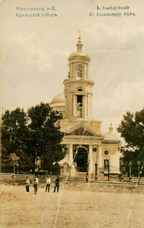 Церковь Сурб Григор Лусаворич (Нахичевань-на-Дону) Церковь Сурб Грикор Лусаворич Собор Св. Григория Просветителя Սուրբ Գրիգոր Լուսավորիչ տաճարВид заведения: кафедральный собор Дата основания: 1783-1807 Основатель: Иосиф Аргутинский Конфессии: Армянская апостольская церковь Состояние: Руинированные и несохранившиеся церкви Содержание 1 История 1.1 Переселение армян из Крыма 2 Архитектура 2.1 Убранство церкви и реликвии 2.1.1 Городские часы Нахичевани-на-Дону 2.2 Разрушение собора 2.3 Священнослужители Собор Сурб Лусаворич 2.3.1 с 1843 года священнослужитями являлись 2.4 Изображения 2.4.1 Панихида по умершему Католикосу Всех Армян Кеворку VI Чорекчияну 2.4.2 Памятный камень на месте собора 2.5 Разное 3 Библиография 3.1 Сноски История Переселение армян из Крыма На донской земле, крымские армяне начали воссоздавать здесь ту церковную организацию, которая существовала в Крыму. Уже в процессе переезда караван переселенцев был разделен по группам в зависимости от места проживания в Крыму. Каждую из них возглавлял свой священник. Как сообщает Г.Патканян, вся церковная утварь была погружена на телеги и по описи передана духовному главе крымских армян архимандриту Петросу Маркосяну. Первыми двигались жители Кафы (Феодосии) вместе со своим владыкой и церковными реликвиями. Несколько быков везли надгробный камень мученика Парона Луйса, который в свое время был вывезен из церкви столичного города Ани, и камень Просветителя, поскольку литургию в его честь служили на этом камне, под которым и был похоронен Парон Луйс. Именно жителями Кафы был основан находившейся в центре города Собор во имя св.Григория Просветителя (Сурб Лусаворич), план которого по поручению Екатерины II был составлен выдающимся архитектором Иваном Егоровичем Старовым. [1] Предание гласит, что императрица сказала ему: «Ты строишь Таврический дворец, а теперь для таврических переселенцев строй хороший собор». Поскольку возведение главной церкви могло продлиться долгие годы, по предложению духовного главы российских армян Иосифа Аргутинского было решено построить временную деревянную часовню. Расходы на ее сооружение взяли на себя Даниэль Каракашьян, Торос Тер-Партухемосян и Макаэль Когбетлян. В 1800 г. по инициативе Верховного Патриарха Гукаса на средства местных армян было построено кирпичное здание. На месте старой деревянной церкви Попов Иван Маркович возвел часовню. [2] Источники сохранили имя еще одного благотворителя, внесшего большой вклад в возведение Собора – Петрос Бабасинян. Строительство церкви было завершено в 1807 году. Свой завершенный вид Собор приобрел в 1814 г. Одновременно со строительством западного северного и восточного входов были построены шесть магазинов, которые стали собственностью церкви. По указанию Иосифа Аргутинского их доходы должны были быть переданы для основания городской гимназии. Однако, после его смерти, в 1814 г.надеждам на быстрое основание гимназии не суждено было сбыться, так как без ведома владыки - архиепископа Ованеса Гарнакерьяна - магазины были проданы. В 1848 году вокруг церкви, по предложению архиепископа Матевоса (Новонахичеванский епархиальный начальник) была построена ограда. В 1852 году сильный ураган снёс позолоченный крест вместе с постаментом колокольни. Церковь нуждалась в ремонте. В 1909 году в церковь было проведено электричество. 