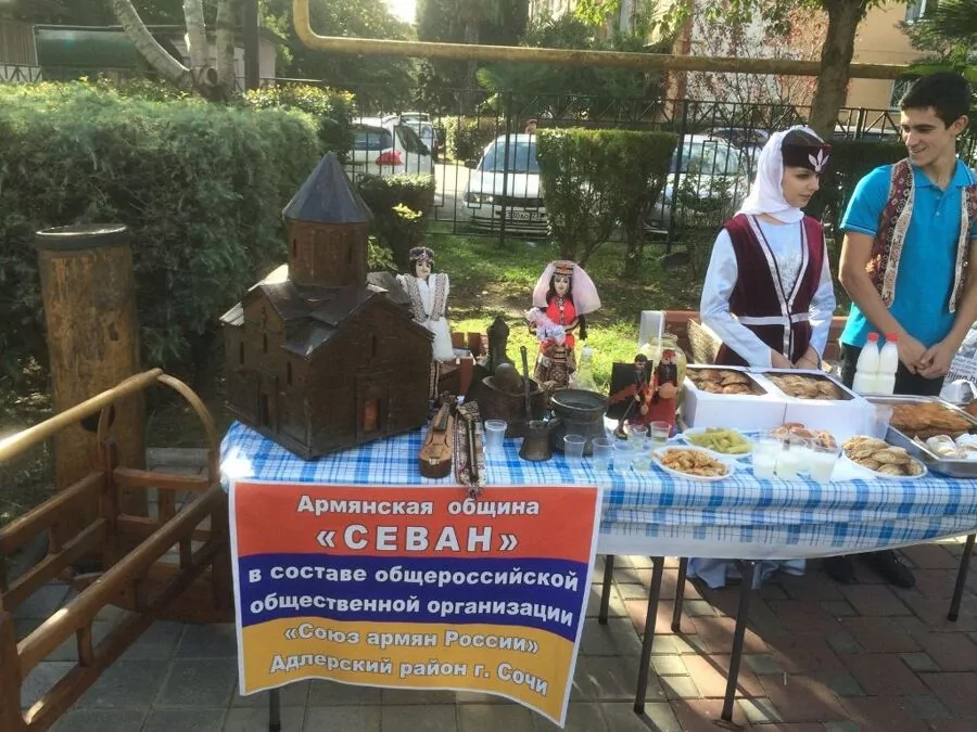 Армянская община Севан Сочи Краткая история Армянская община Севан города Сочи основана 16 ноября 1989 года Среди основателей М Гюльбангян Г Ватьян Г Устьян и Крикор Мазлумян заслуженный деятель культуры РФ Община зарегистрирована в 2003 году первым председателем был Оганес Чепнян С 2009 года община входит в состав Союза армян России В 2013 году награждена премией 1 степени за вклад в сохранение армянской идентичности Деятельность Община Севан активно работает по сохранению армянской культуры языка и традиций Она участвует в культурной экономической политической образовательной и спортивной жизни Сочи Проводит гуманитарные акции и сотрудничает с Арменией В Адлерском районе Сочи общиной построена Армянская Апостольская церковь Сурб Саркис Действует армянская школа и воскресная школа при церкви Руководство и структура Председатель Степан Кагосян В состав совета входят заместители по различным направлениям образования культуре межнациональным отношениям международным связям работе с женщинами молодежью и сельскими округами Совет старейшин советники и попечительский совет Контакты Адрес 354003 Краснодарский край г Сочи ул Пластунская д 142 Дополнительный адрес г Сочи Адлерский район ул Свердлова 533 Телефон факс 7 918 2022895 7 862 2305151 7 862 2984278 7 862 2619305 Email info@sar-sevanru Культурные проекты Община поддерживает творческие коллективы ансамбли танца и песни Издает газету Севан У общины есть канал на Youtube Sar Sevan Символика Эмблема общины символизирует мир и созидание на Черноморском побережье Девиз Народ армянский спасение твое в твоем единении цитата Егише Чаренца Численность и значение В Сочи и окрестностях проживает более 100 тысяч армян Община Севан играет важную роль в сохранении армянской культуры и взаимодействии с другими национальностями города